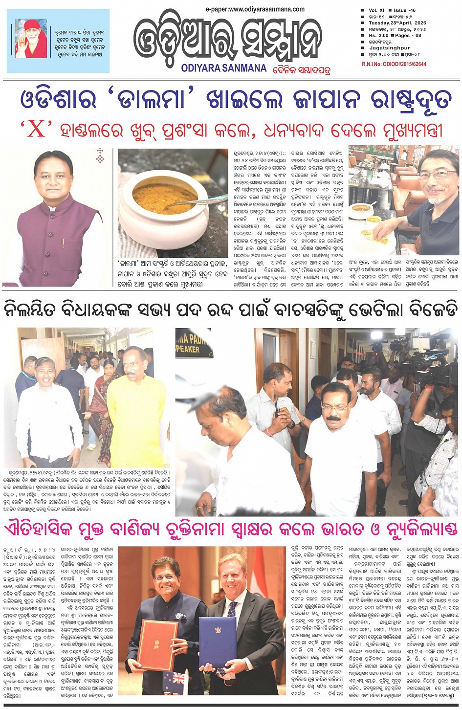 Odiyara Sanman Odia Daily Newspaper