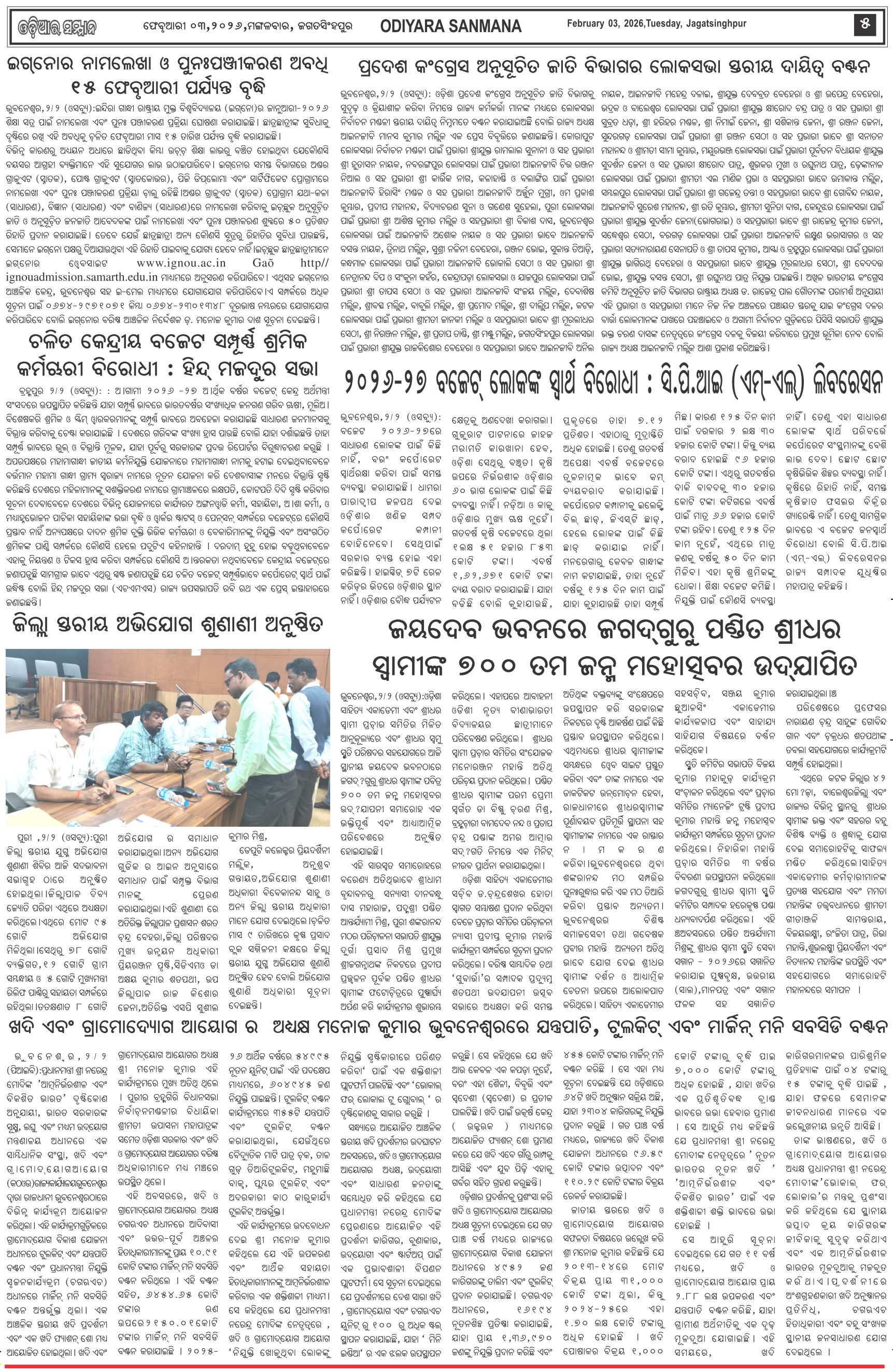 Odiyara Sanman Odia Daily Newspaper Page: 5 February 03, 2026 Odiyara Sanman Odia Daily Newspaper << First << 3 4 5 6 >> Last >> Page 1Page 2Page 3Page 4Page 5Page 6Page 7Page 8 × Odiyara Sanman Odia Daily Newspaper Page-1Page-2Page-3Page-4Page-5Page-6Page-7Page-8 << First << 3 4 5 6 >> Last >> Page-1Page-2Page-3Page-4Page-5Page-6Page-7Page-8 Page-5