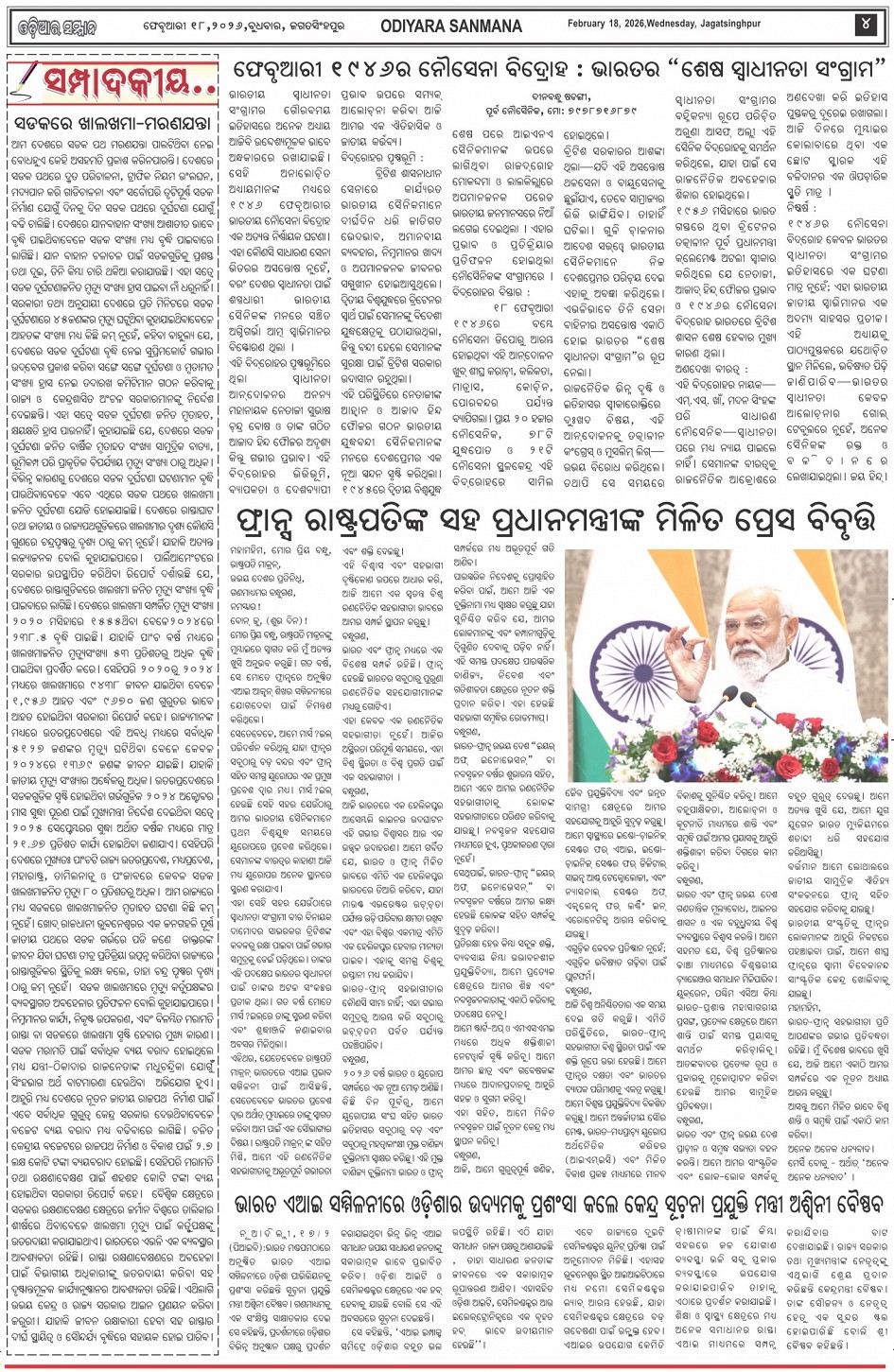 Odiyara Sanman Odia Daily Newspaper Page: 4 February 18, 2026 Odiyara Sanman Odia Daily Newspaper << First << 2 3 4 5 >> Last >> Page 1Page 2Page 3Page 4Page 5Page 6Page 7Page 8 × Odiyara Sanman Odia Daily Newspaper Page-1Page-2Page-3Page-4Page-5Page-6Page-7Page-8 << First << 2 3 4 5 >> Last >> Page-1Page-2Page-3Page-4Page-5Page-6Page-7Page-8 Page-4