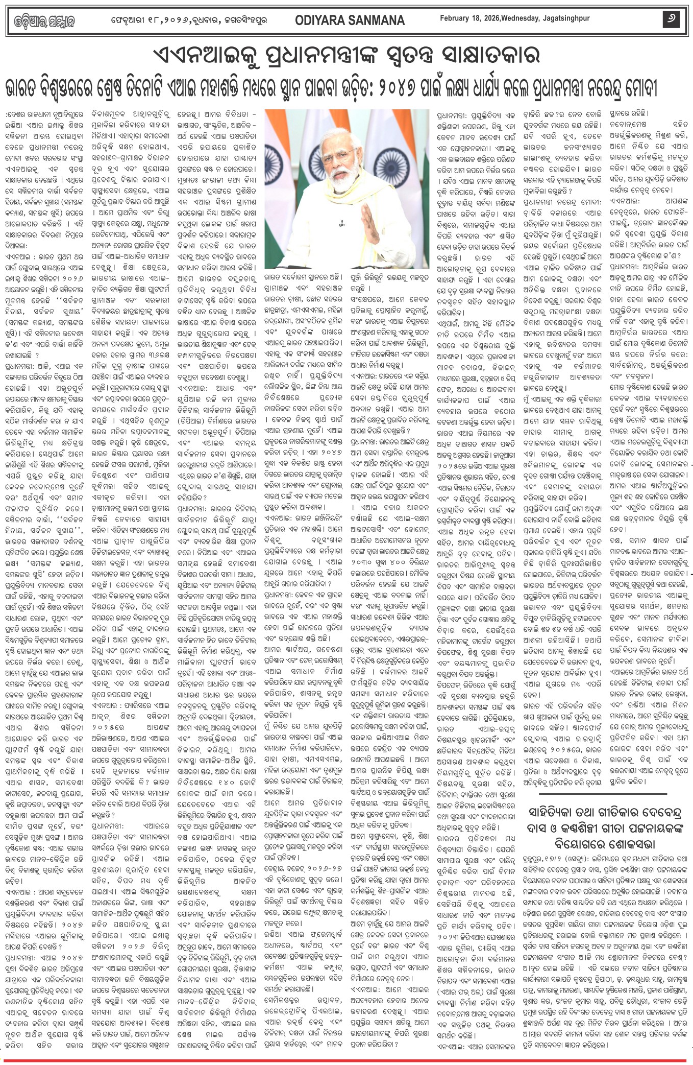 Odiyara Sanman Odia Daily Newspaper Page: 6 February 18, 2026 Odiyara Sanman Odia Daily Newspaper << First << 4 5 6 7 >> Last >> Page 1Page 2Page 3Page 4Page 5Page 6Page 7Page 8 × Odiyara Sanman Odia Daily Newspaper Page-1Page-2Page-3Page-4Page-5Page-6Page-7Page-8 << First << 4 5 6 7 >> Last >> Page-1Page-2Page-3Page-4Page-5Page-6Page-7Page-8 Page-6