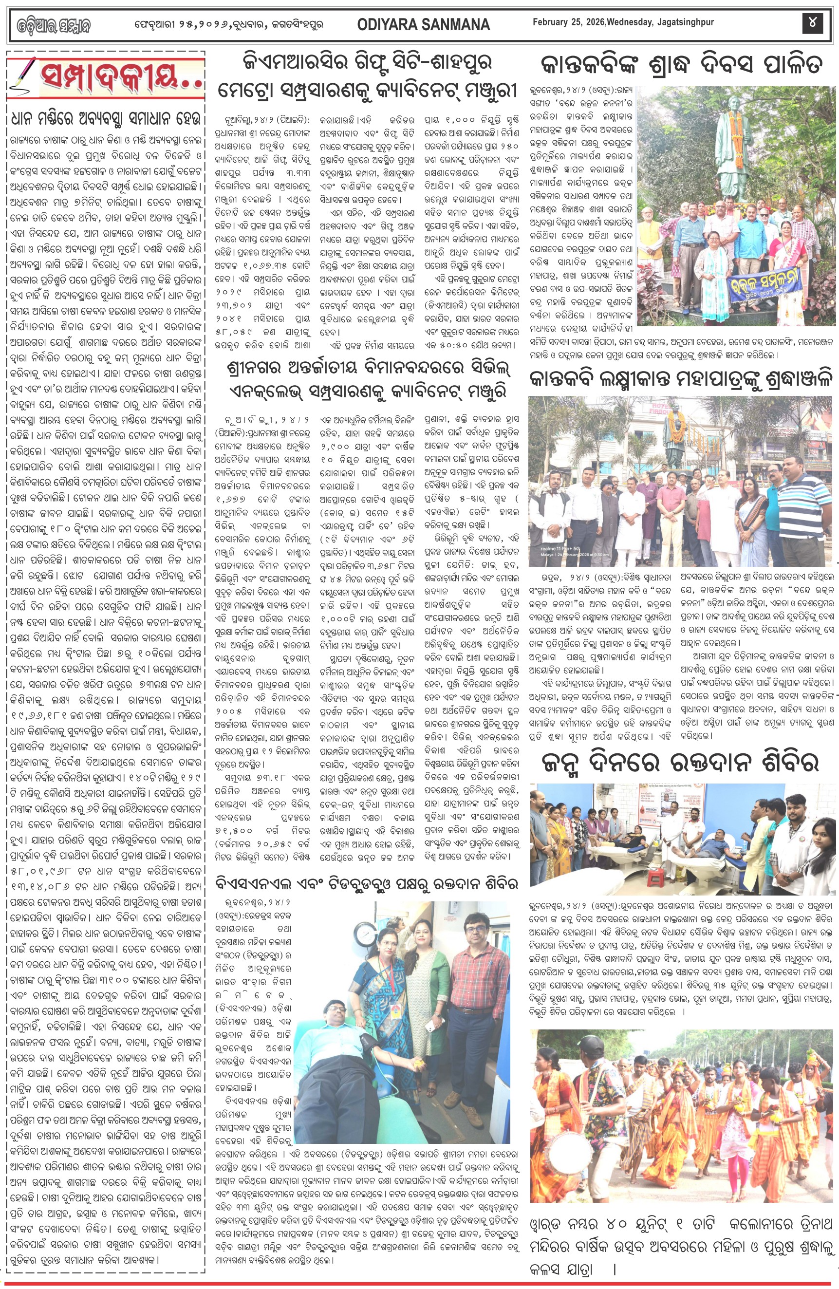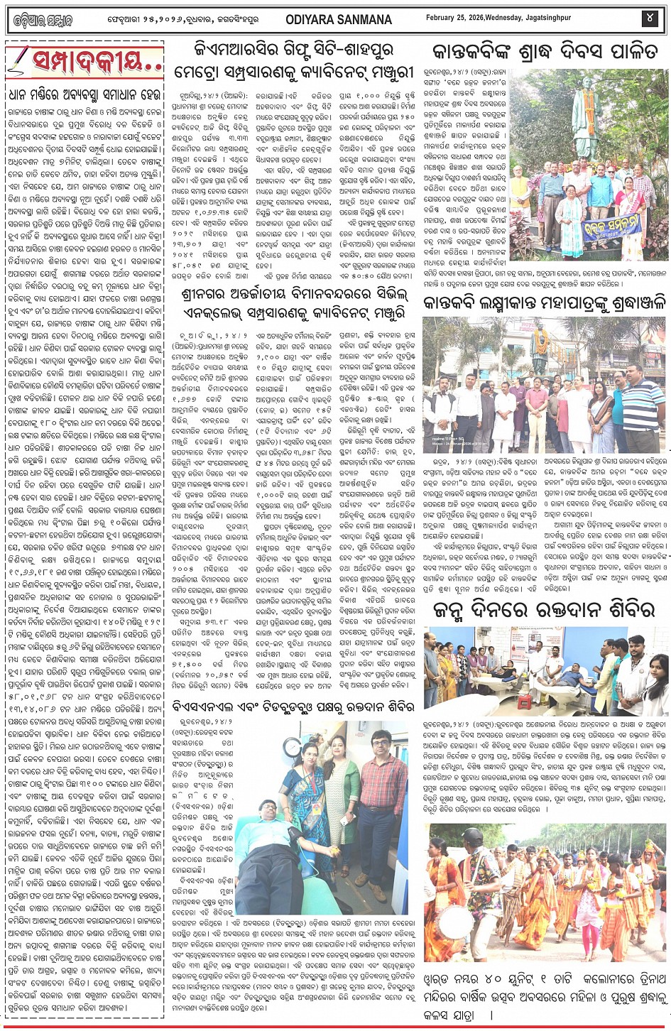 Odiyara Sanman Odia Daily Newspaper Page: 4 February 25, 2026 Odiyara Sanman Odia Daily Newspaper << First << 2 3 4 5 >> Last >> Page 1Page 2Page 3Page 4Page 5Page 6Page 7Page 8 × Odiyara Sanman Odia Daily Newspaper Page-1Page-2Page-3Page-4Page-5Page-6Page-7Page-8 << First << 2 3 4 5 >> Last >> Page-1Page-2Page-3Page-4Page-5Page-6Page-7Page-8 Page-4