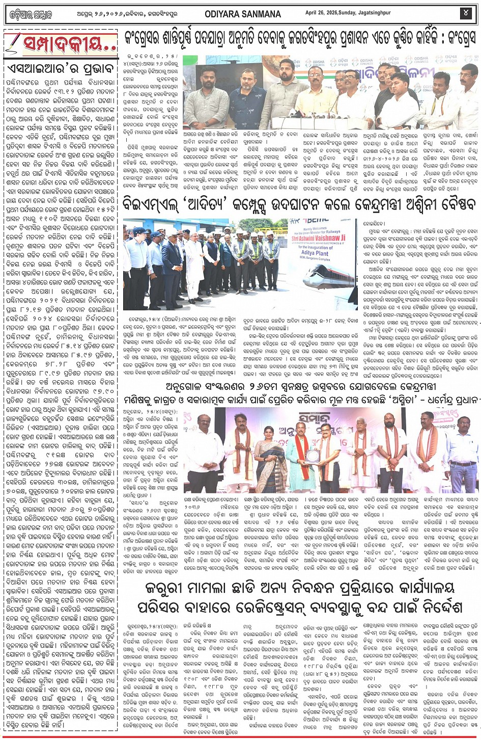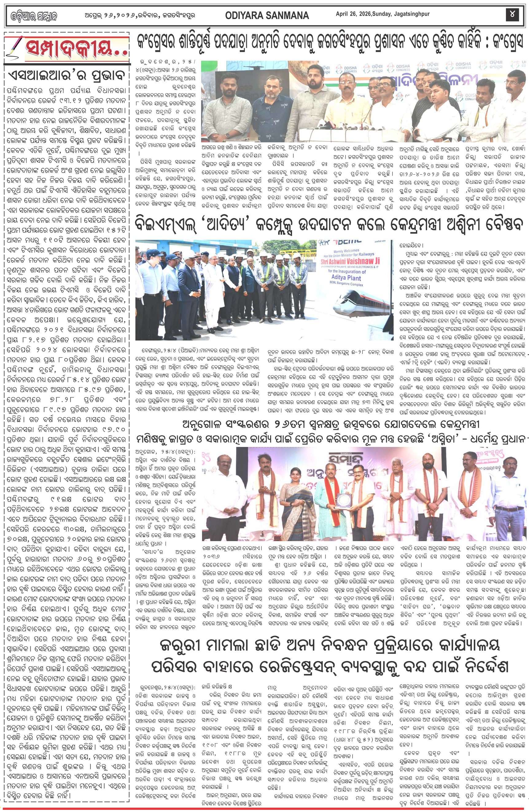 Odiyara Sanman Odia Daily Newspaper Page: 4 April 26, 2026 Odiyara Sanman Odia Daily Newspaper << First << 2 3 4 5 >> Last >> Page 1Page 2Page 3Page 4Page 5Page 6Page 7Page 8 × Odiyara Sanman Odia Daily Newspaper Page-1Page-2Page-3Page-4Page-5Page-6Page-7Page-8 << First << 2 3 4 5 >> Last >> Page-1Page-2Page-3Page-4Page-5Page-6Page-7Page-8 Page-4