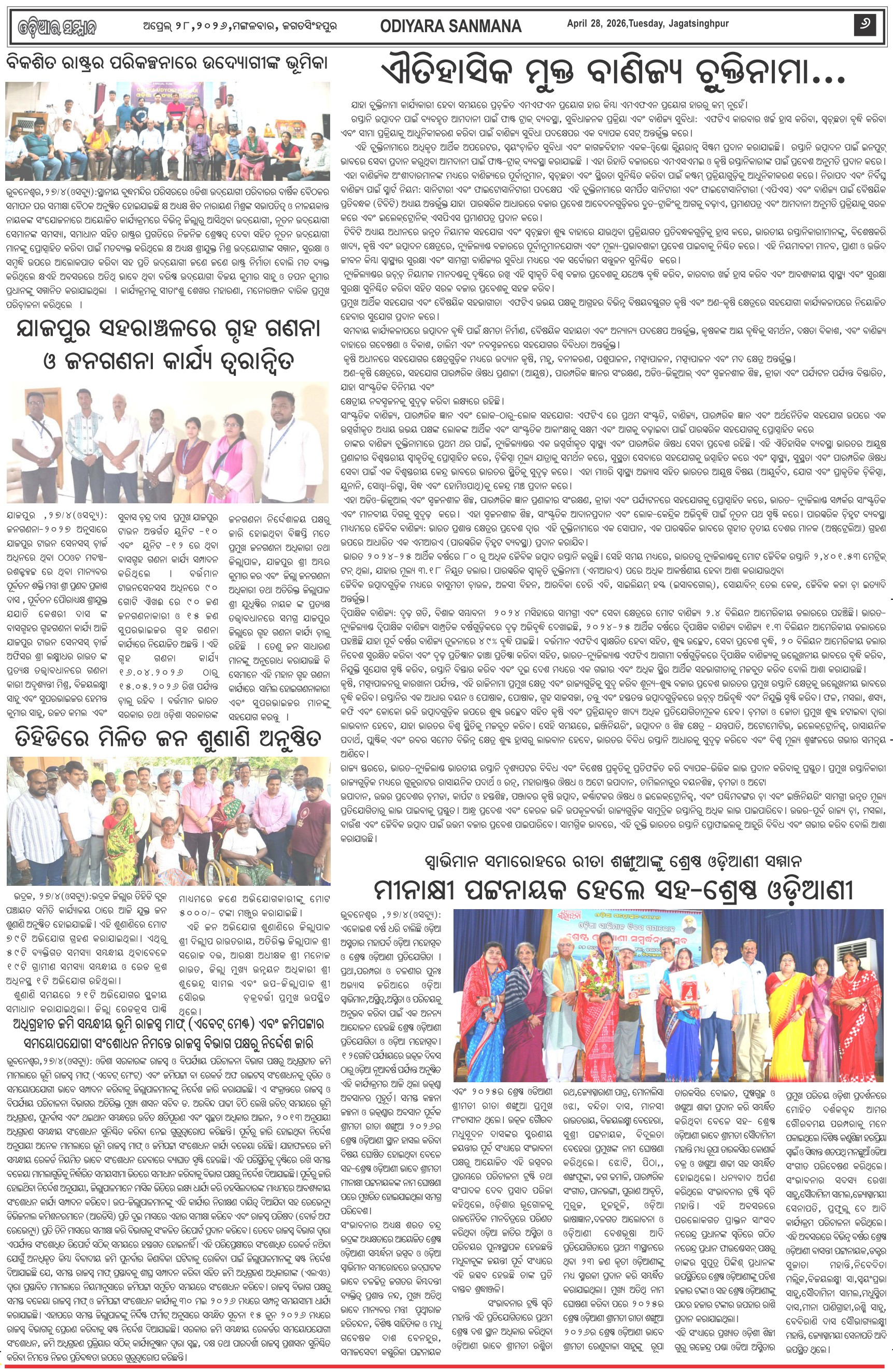 Odiyara Sanman Odia Daily Newspaper Page: 6 April 28, 2026 Odiyara Sanman Odia Daily Newspaper << First << 4 5 6 7 >> Last >> Page 1Page 2Page 3Page 4Page 5Page 6Page 7Page 8 × Odiyara Sanman Odia Daily Newspaper Page-1Page-2Page-3Page-4Page-5Page-6Page-7Page-8 << First << 4 5 6 7 >> Last >> Page-1Page-2Page-3Page-4Page-5Page-6Page-7Page-8 Page-6